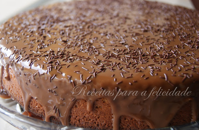 Retira-se e deixa-se arrefecer. Corte o bolo, depois de arrefecido, na diagonal e rechear com metade do creme, cubra com a outra metade e barrar o bolo com o restante.