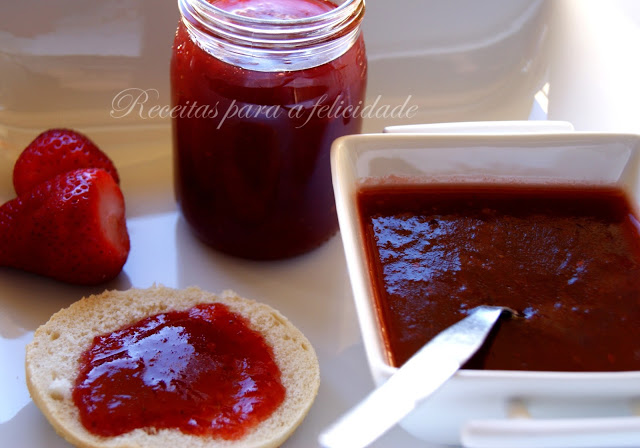 Quando começar a ferver baixe o lume novamente e deixe o doce cozinhar por mais 20 minutos ou até que tenha a textura desejada (não deve ficar muito espesso senão depois de frio vai ficar duro).
