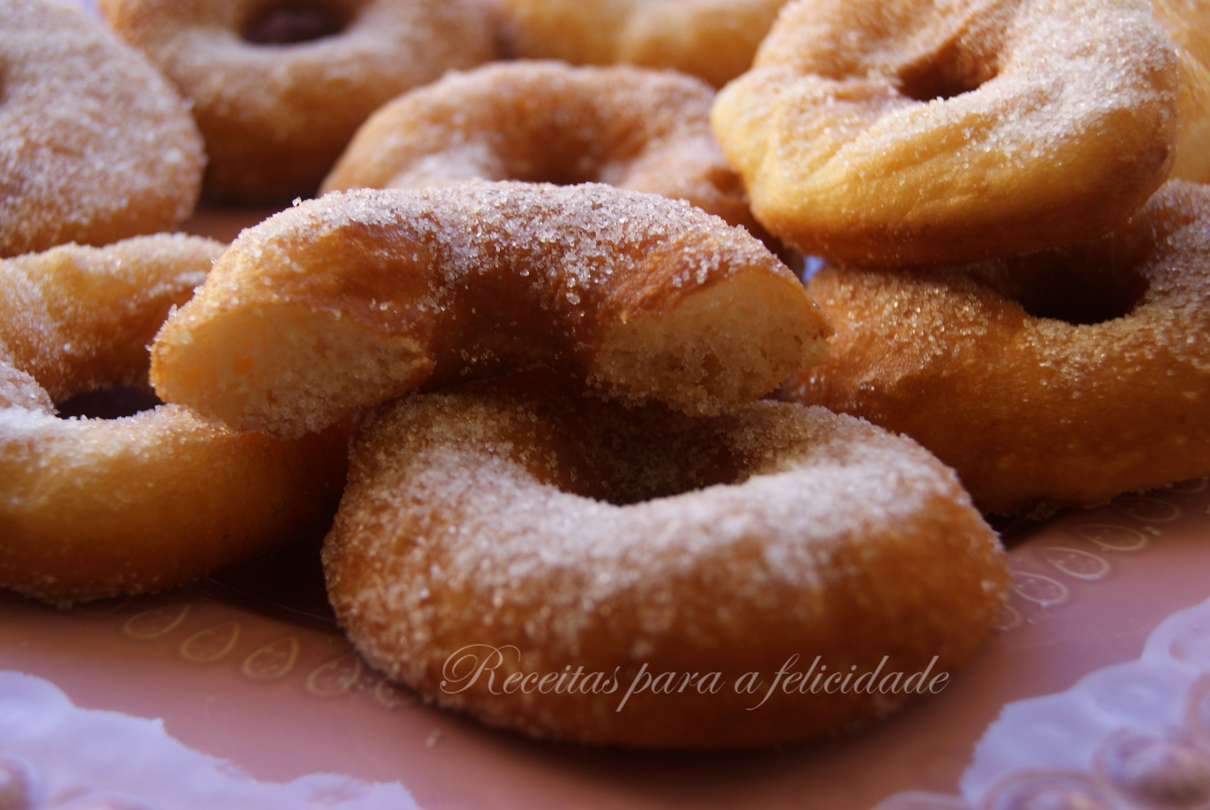 Frite os donuts 3 minutos de cada lado, em bastante óleo e escorra-os depois em papel absorvente.