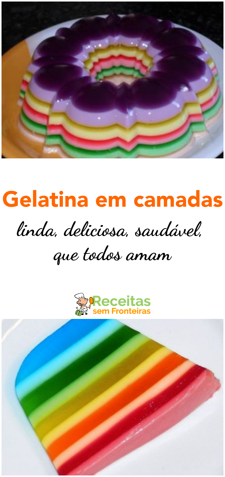 Repetir o procedimento com os demais sabores, sempre obedecendo os tempos de 15 minutos para a camada de gelatina e 15 minutos para a camada do creme.