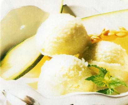 Retire a casca e as sementes do melão e corte-o em cubos até completar 6 xícaras de chá.