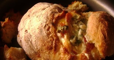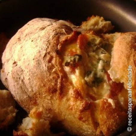 Comece por tirar um género de tampa do pão e retire todo o seu interior(miolo) e reserve.