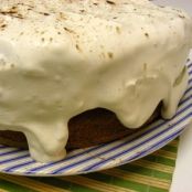 Desenformei ainda mornos, furei com um palito, e distribuí a calda pelos dois bolos. (Simplesmente fervi a água com o açúcar e a baunilha até o açúcar se dissolver completamente.)