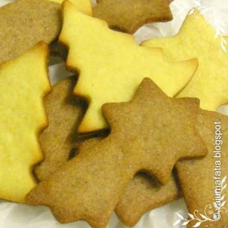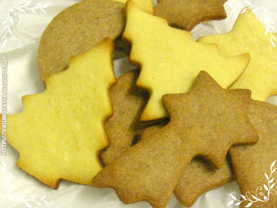 Estender, com a ajuda de um rolo da massa, numa superfície bem enfarinhada. Usar os cortadores de massa que preferirem e levar a forno médio num tabuleiro forrado com papel vegetal.