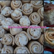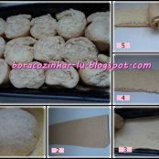 Foto 4 e 5 - Depois vá abrindo a massa em retângulos, cubra com o recheio e enrole.