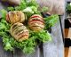 Em um refratário dispor as rodelas de hortaliças de maneira que se intercalem.