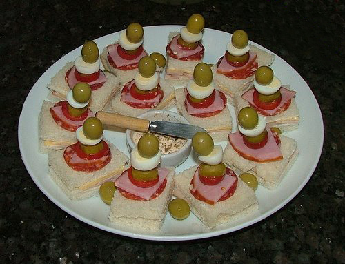 Pegue a mistura feita com maionese e mostarda e passe na fatia de pão inteira e logo corte em 4 pedaços. Em cada pedaço coloque o queijo, depois o salame italiano, um pedaço de alface (Mais ou menos do tamanho do pedaço do pão de sanduíche) um pedaço de tomate, uma rodela de ovo cozido e um pedaço de pepino, para que fique tudo juntinho e bem preso é importante que se coloque um palito de dente para dar sustentação ao sanduíche aberto.