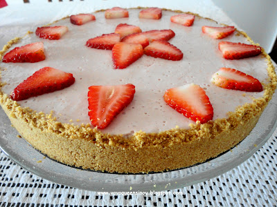 Depois é só desenformar e enfeitar com morangos ou da forma que preferir.