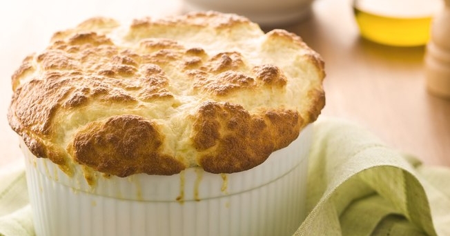 Despeje a massa na fôrma preparada (deixe ultrapassar 0, 5 cm da borda), alise a superfície e com a ponta da faca, afaste a mistura da borda para ajudar o suflê crescer. Leve ao forno quente (200°C), preaquecido, em uma assadeira com água quente, por 10 minutos ou até o suflê crescer e dourar. Sirva em seguida