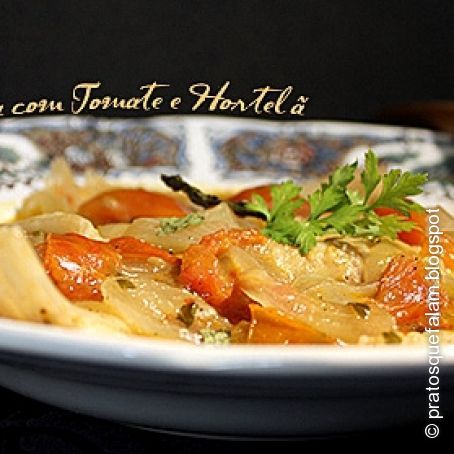 Junte o tomate aos pedaços e tempere com flor de sal e pimenta.