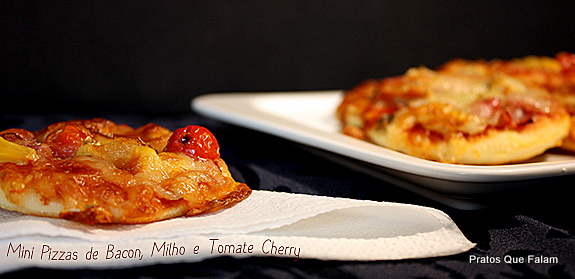 Mini Pizzas de Bacon, Milho e Tomate Cherry
