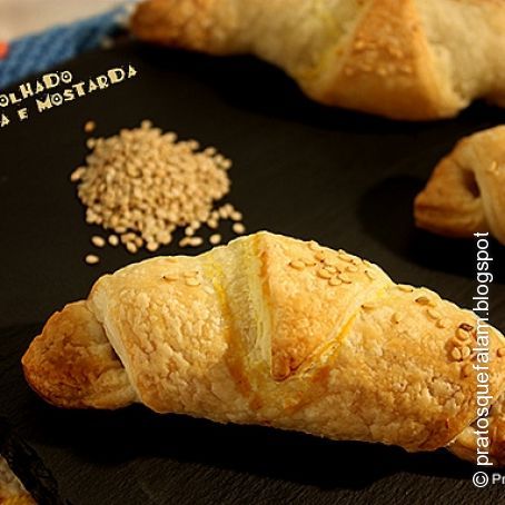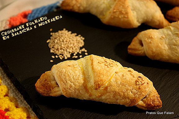 4. Coloque os croissants numa assadeira forrada com papel vegetal. Pincele com água e salpique com sementes de sésamo.