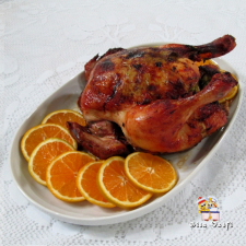 Retirar a pele do frango e temperá-lo com o gengibre, o sal e o moinho pimenta para aves Margão. Espremer uma laranja e com ela regar as pernas do frango. Levar a forno pré-aquecido a 180º virando a meio para tostar e cozinhar de ambos os lados. Acompanhar com arroz branco e salada.