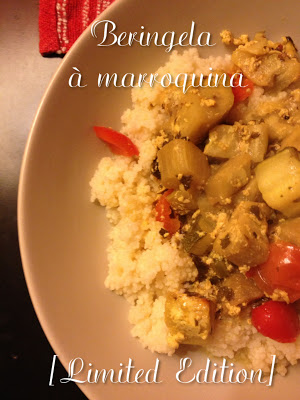 Cortar as beringelas em cubos e salpicá-las com sal. Deixá-la cerca de 30m num escorredor. Cortar o tomate cherry ao meio, o pimento, a curgete e o aipo em rodelas e picar os dentes de alho. Entretanto ligar o forno nos 200º. Num pirez grande, misturar os legumes todos e regá-los generosamente com azeite. Temperar com sal, pimenta em grão acabada de moer e óregãos. Misturar os 4 iogurtes num recipiente à parte com açafrão, caril e cominhos. Envolver esta mistura nos legumes e salpicar com hortelã. Levar ao forno cerca de 45m. Entretanto ferver água suficiente que cubra o cuscuz, deixar cerca de 10m e temperar com uma pitada de sal. Quando os legumes estiverem assados, misturar com o cuscuz e servir de seguida.