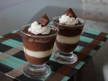 Coloque em um refratário a metade deste creme de chocolate e leve ao congelador por 20 minutos