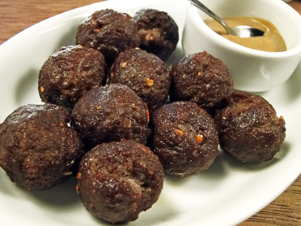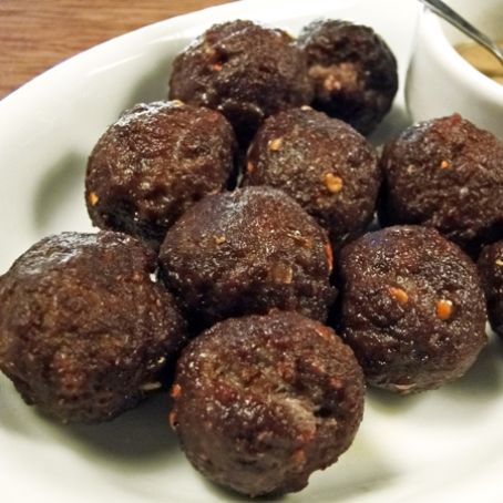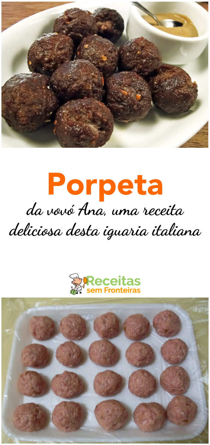 Bolinho de carne moída, de origem italiana (polpeta), também conhecida como almôndega.