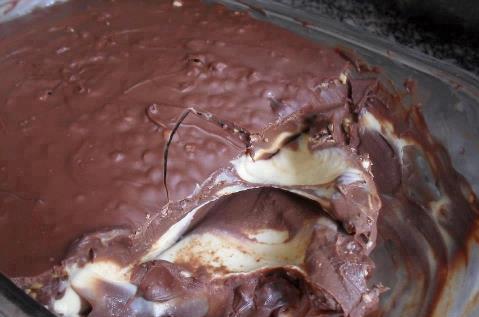 Separe 1/3 dessa mistura e no restante coloque ochocolate meio amargo derretido e ficará um creme escuro