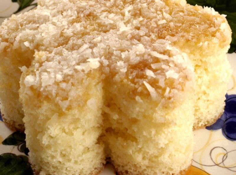 Retire o bolo do forno e fure-o com um palito ainda quente. Regue com a calda quente e deixe esfriar. Sirva gelado.