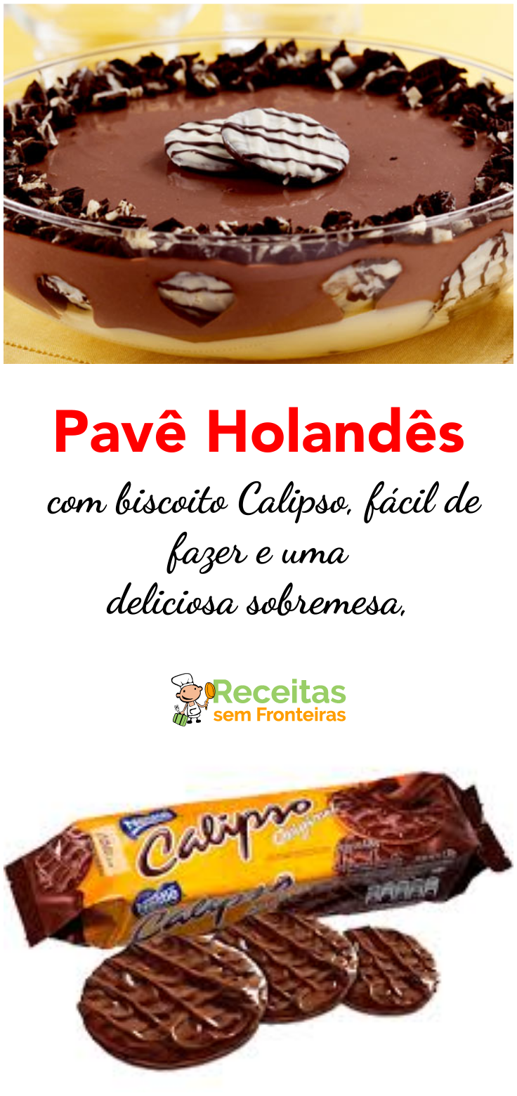 Misture metade dessa gelatina no creme de leite condensado e reserve o restante. Em uma tigela, misture o creme de leite, o açúcar, o chocolate em pó e o restante da gelatina reservada. Nas laterais deum refratário, distribua os biscoitos Calipso, de maneira que fiquem em pé. Monte o pavê alternando camadas de biscoitos maisena, umedecidosno soro, e camadas do creme de leite condensado. Cubra com o creme de chocolate e leve à geladeira até firmar. Decore com biscoitos Calipso.