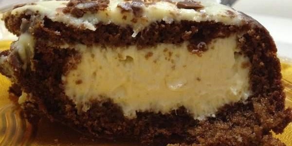 Bolo pronto corte a tampa do bolo com 2 cm de espessura. Com uma faca afiada, recorte a margem do bolo.Com uma colher, vá retirando a faixa que se formou e reserve a massa que sobrar.