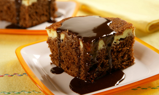 Ponha essa massa em uma assadeira de 40 x 30 cm, untada e com o fundo forrado com papel-manteiga untado. Disponha o creme frio em colheradas sobre a massa e leve ao forno, preaquecido, por 40 minutos ou até assar. Retire do forno e deixe ficar morno para desenformar.