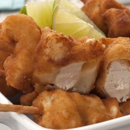 Monte todos e passe cada um na farinha de trigo, no ovo e na farinha de rosca. Frite em óleo quente até que dourem, virando uma vez. Escorra em papel-toalha e sirva-os quentes, acompanhados com molho vinagrete.