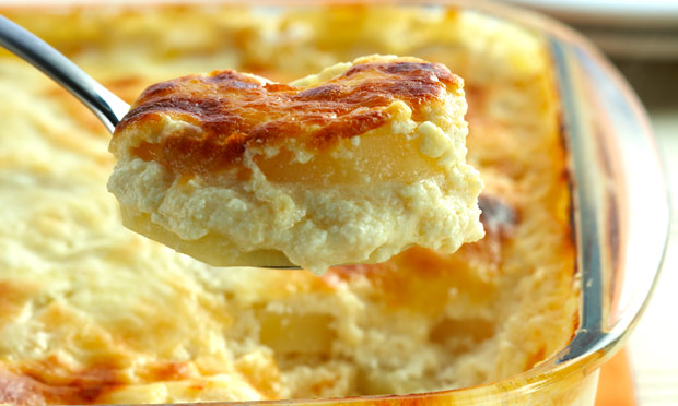 Uma camada de batatas, uma segunda camada de filé grelhado e fatiado, cobertas de muito, mas muito queijo... levado ao forno para gratinar! Simplesmente divino!