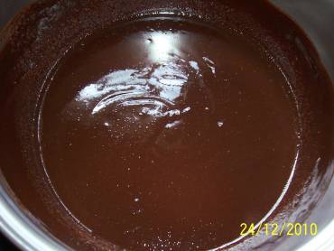 Coloque o chocolate meio amargo em uma panela e leve ao fogo em banho-maria até derreter