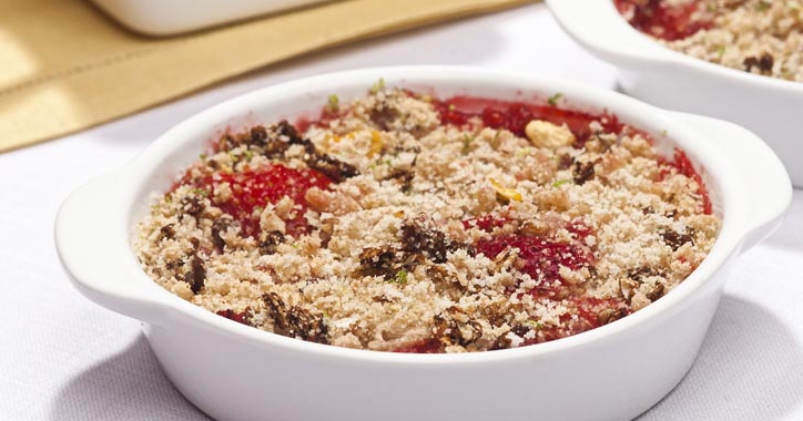Uma deliciosa torta típica da Inglaterra, o crumble normalmente leva uma base de frutas com uma espécie de farofa, o crumble, por cima e depois é assada no forno. A farofa geralmente tem uma fruta seca para dar a crocância e o sabor, além de farinha e muita manteiga!