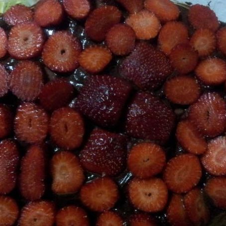 Deixe esfriar e coloque os morangos cortados no meio por cima.
