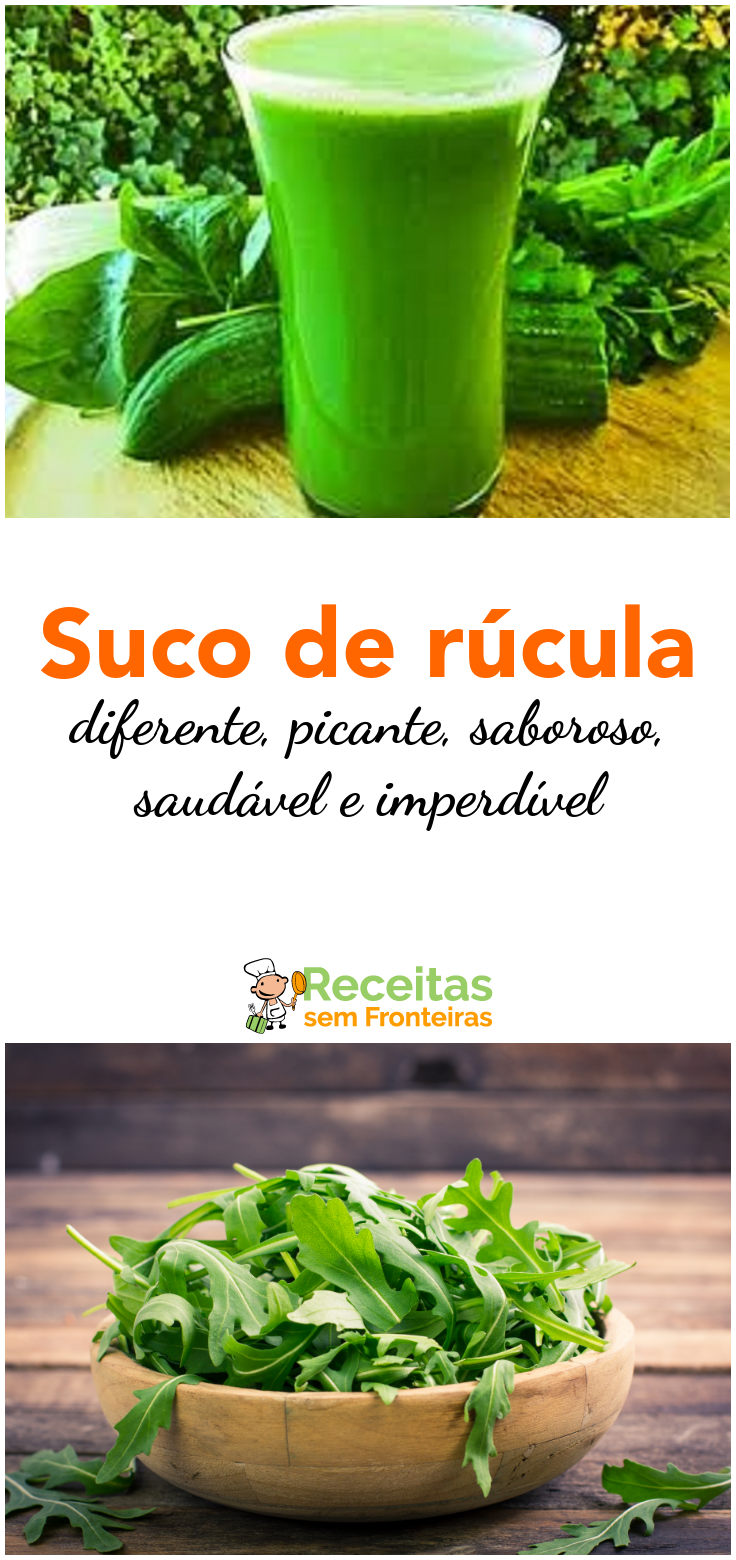Pique a rúcula coloque juntamente o açúcar e o cubo de gelo e sirva em seguida.