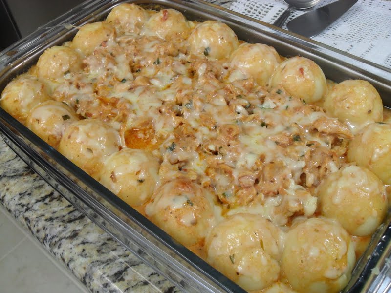 Tirar do fogo e acrescentar o creme de leite, coloque em um refratário grande