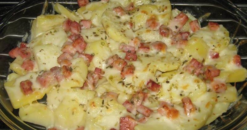 Espalhar o queijo por cima das batatas e do bacon e polvilhar tudo com orégano