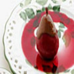 Derreta o chocolate em banho-maria, regue as pêras e sirva em seguida.