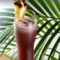 Antes de servir a bebida, coloque pedacinhos de abacaxi e pedras de gelo nos copos.