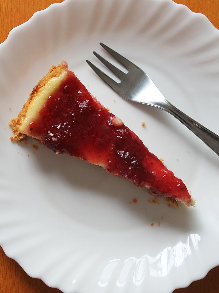 Desenforme o cheesecake sobre um prato e cubra com a calda.