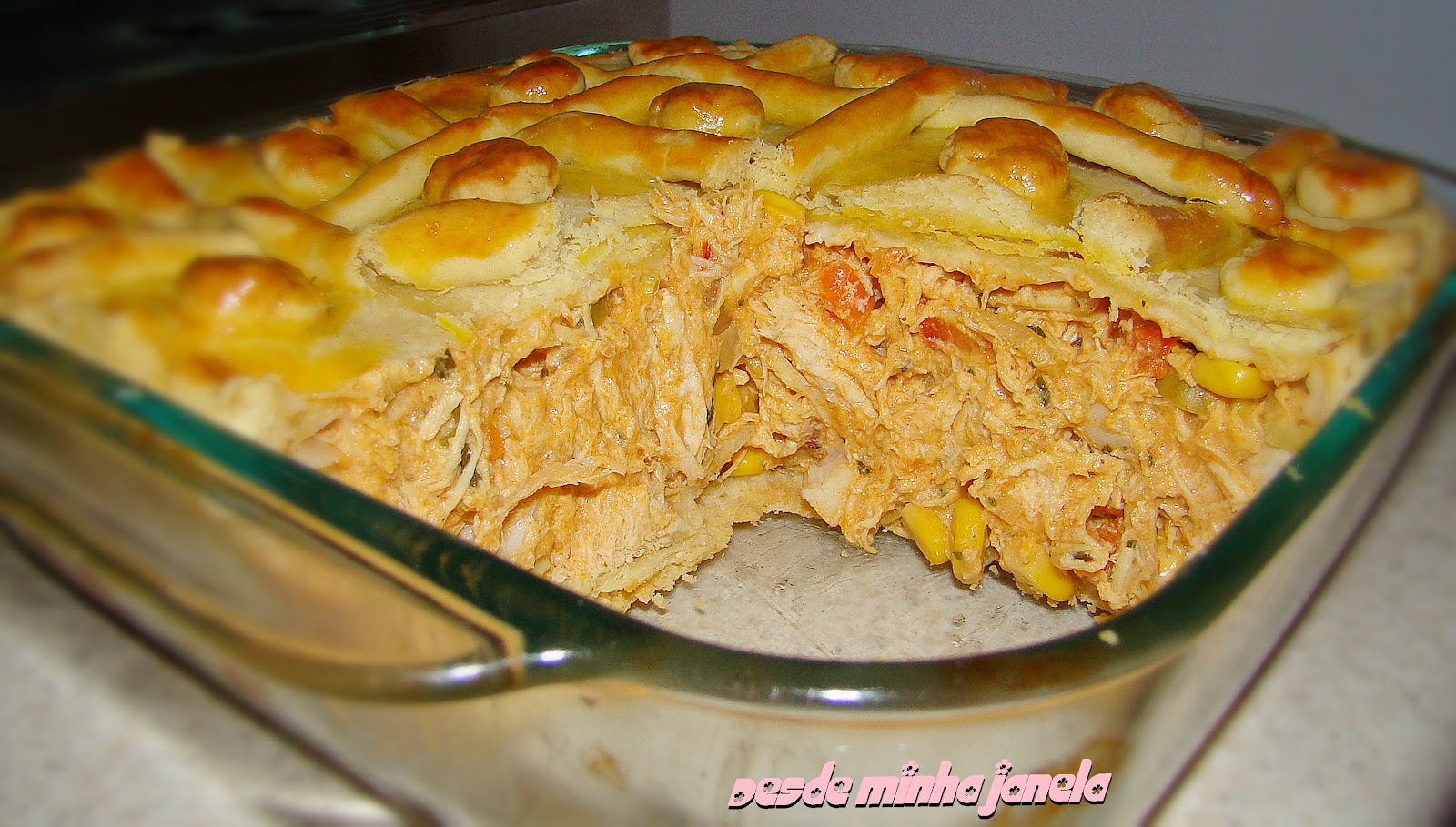 Coloque o recheio e tampe com o restante da massa (que você pode abrir em um filme plástico), fechando a torta nas laterais