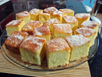 Bata as gemas e o açúcar, acrescente a farinha, o leite fervido e o fermento, mexendo sempre, por último coloque as clara em neve bem devagar, despejar na forma untada e polvilhada de farinha