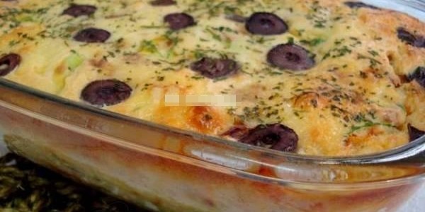 Uma camada de presunto rasgado ou picado, uma camada de mussarela, proceda assim até a ultima camada, que deverá ser de abobrinha