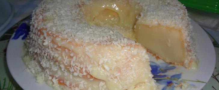 Deixe esfriar um pouco de desenforme. A consistência não é de um bolo comum, este bolo fica mais molhe, tipo uma queijada.
