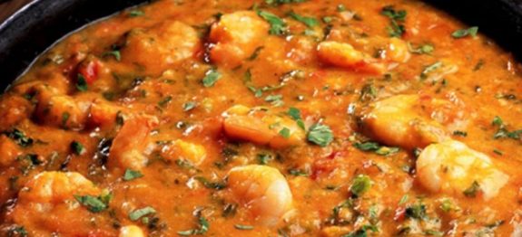 -Coloque o camarão refogado numa panela, junte o creme de mandioca e leve ao fogo