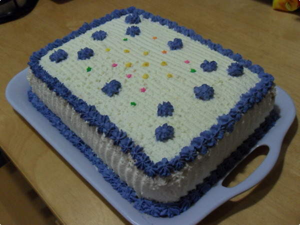 3º - Colocar a parte do bolo restante por cima do recheio e regar novamente.