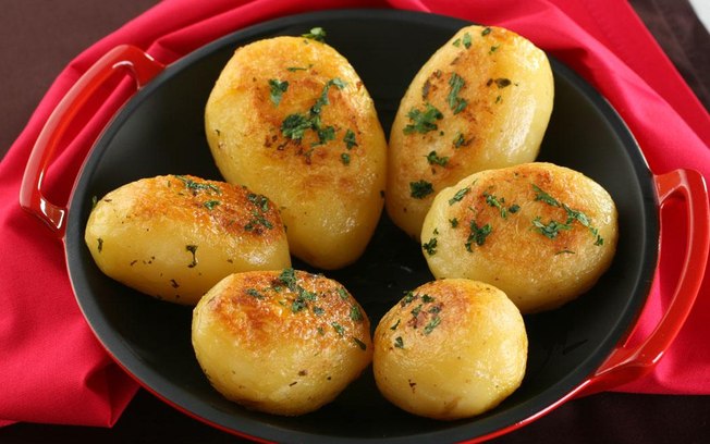 Cozinhe as batatas na água fervente com o caldo de galinha por cerca de 20 minutos ou até que estejam macias. Em seguida, escorra a água e coloque as batatas em uma assadeira. Coloque 1 colher (sopa) de manteiga sobre cada batata, salpique a salsinha e leve ao forno médio (180ºC) preaquecido por cerca de 20 minutos ou até que estejam douradas.