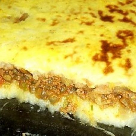 Coloca a primeira camada do purê, coloca o recheio, cobre com outra camada de purê e por cima queijo ralado.