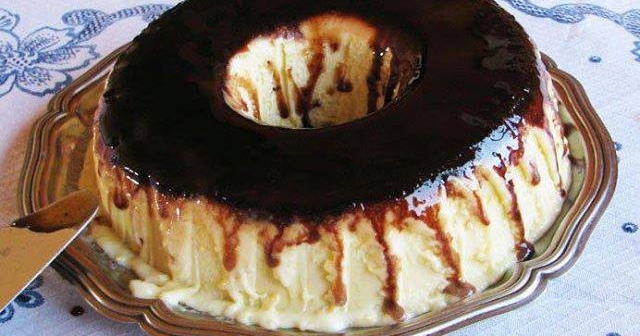Misture as 3 colheres de chocolate às 5 colheres de água e leve ao fogo até ferver. Coloque sobre a calda que está na forma de pudim.