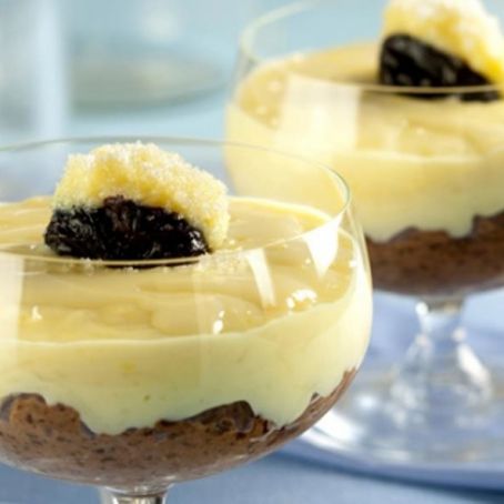 No liquidificador , bata as ameixas com a água até formar um creme. Misture o creme de leite e as claras em neve Distribua até a metade de taças individuais e leve à geladeira até firmar.