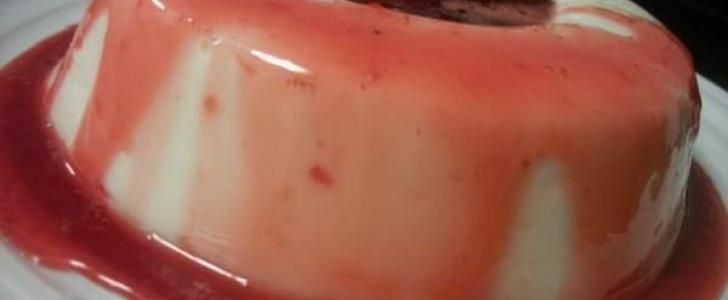 Levar ao fogo todos os ingredientes do manjar menos a baunilha mexendo sempre até engrossar Retirar do fogo juntar a baunilha,esperar esfriar um pouco Colocar em forma de furo central de 20 cm levemente untada com óleo Levar à geladeira por 4 horas mais ou menos Desenformar e servir com a calda Calda de morango Levar os ingredientes ao fogo até que os morangos se desmanchem por 5 minutos mais ou menos.