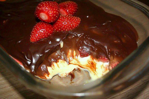 Derreta em banho-maria o chocolate e misture o creme de leite.
