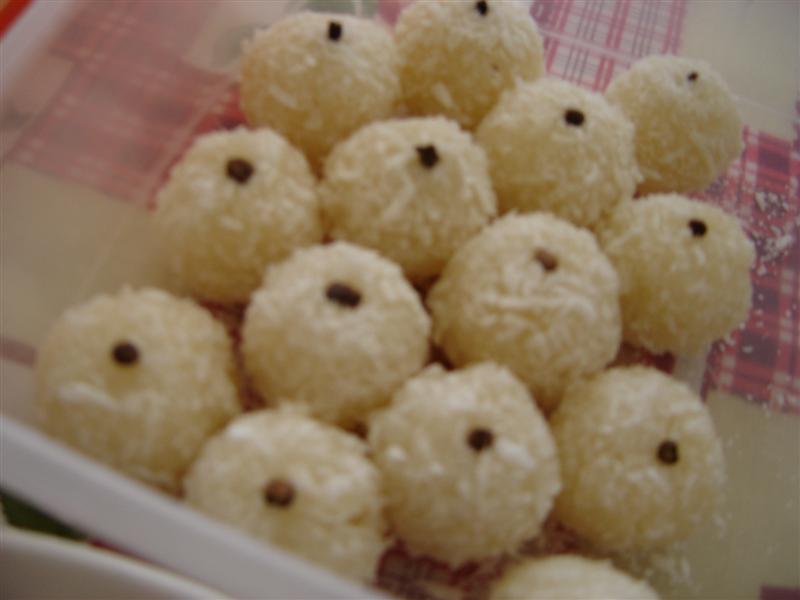 Enrole os beijinhos, passe-os no coco ralado.