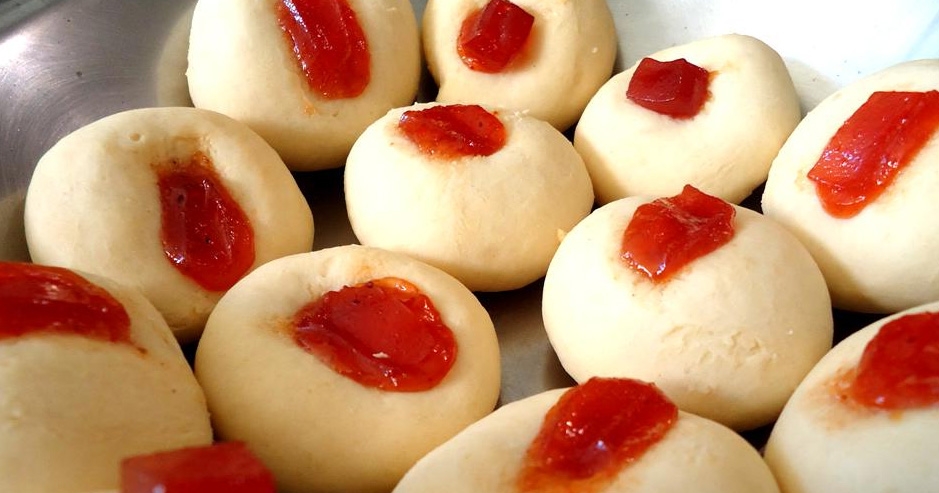- Colocar goiabada cortada em cubinhos para enfeitar, por cima dos biscoitinhos.